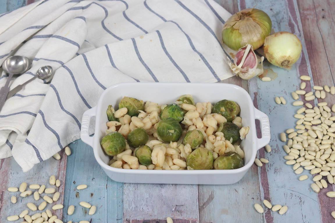 Las alubias blancas con coles de bruselas son una receta muy sabrosa que combina dos ingredientes muy saludables. Las judías blancas son una buena fuente de nutrientes y si además les añades unas coles de Bruselas conseguirás un plato muy vaciante y equilibrado.