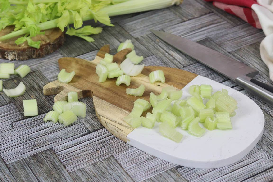 Si vas a utilizar el apio para cocinar, por ejemplo como parte de un sofrito entonces te recomiendo que congeles el apio pelado. En este caso primero lava bien las ramitas de apio y después pélalas con ayuda de un cuchillo quitando los hilos y las partes más fibrosas.