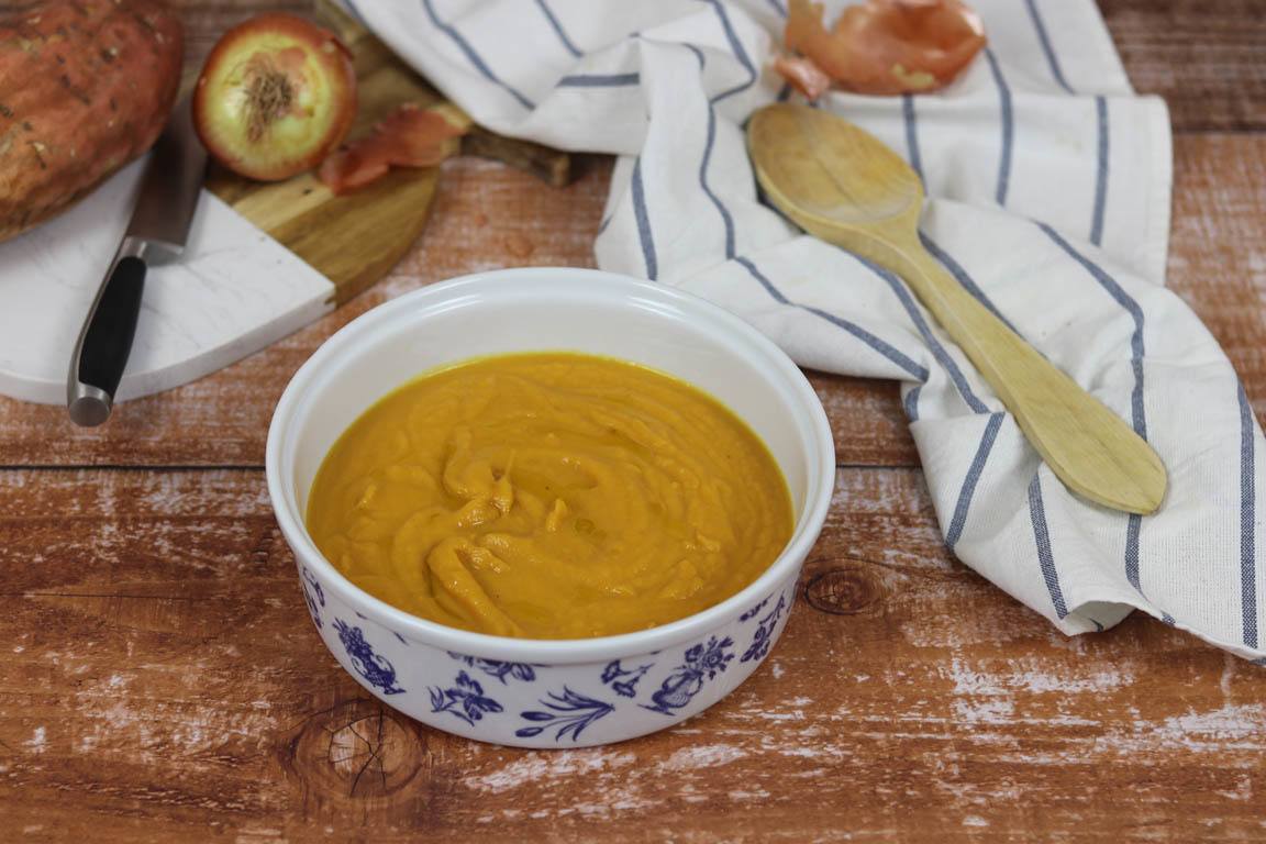 El boniato es un ingrediente que solemos utilizar de guarnición o acompañamiento de platos principales. Tiene un sabor dulce y le podemos dar otros usos como en este caso para preparar una deliciosa crema caliente con un toque picante. Las cremas caseras de verdura son platos muy fáciles y rápidos de preparar.