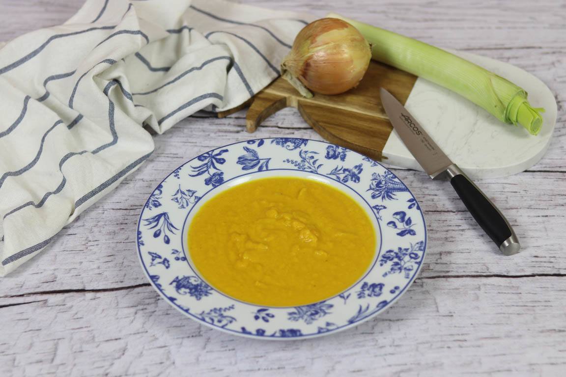 Esta crema de zanahoria y manzana no lleva nata ni patata por lo que es muy ligera de tomar por ejemplo para preparar una cena rápida.