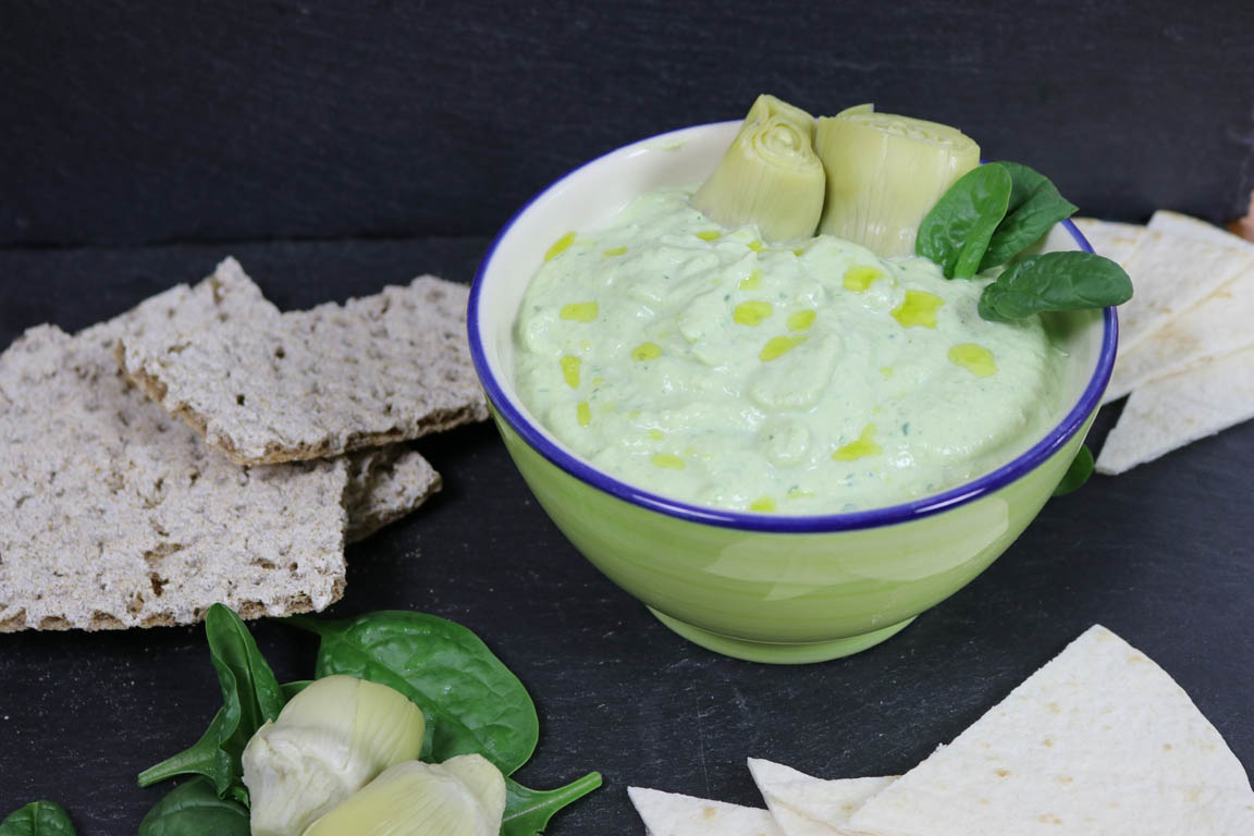 Receta de dip frío de espinacas y alcachofas saludable y muy fácil de hacer. De esta manera podemos aprovechar las propiedades diuréticas de las alcachofas.