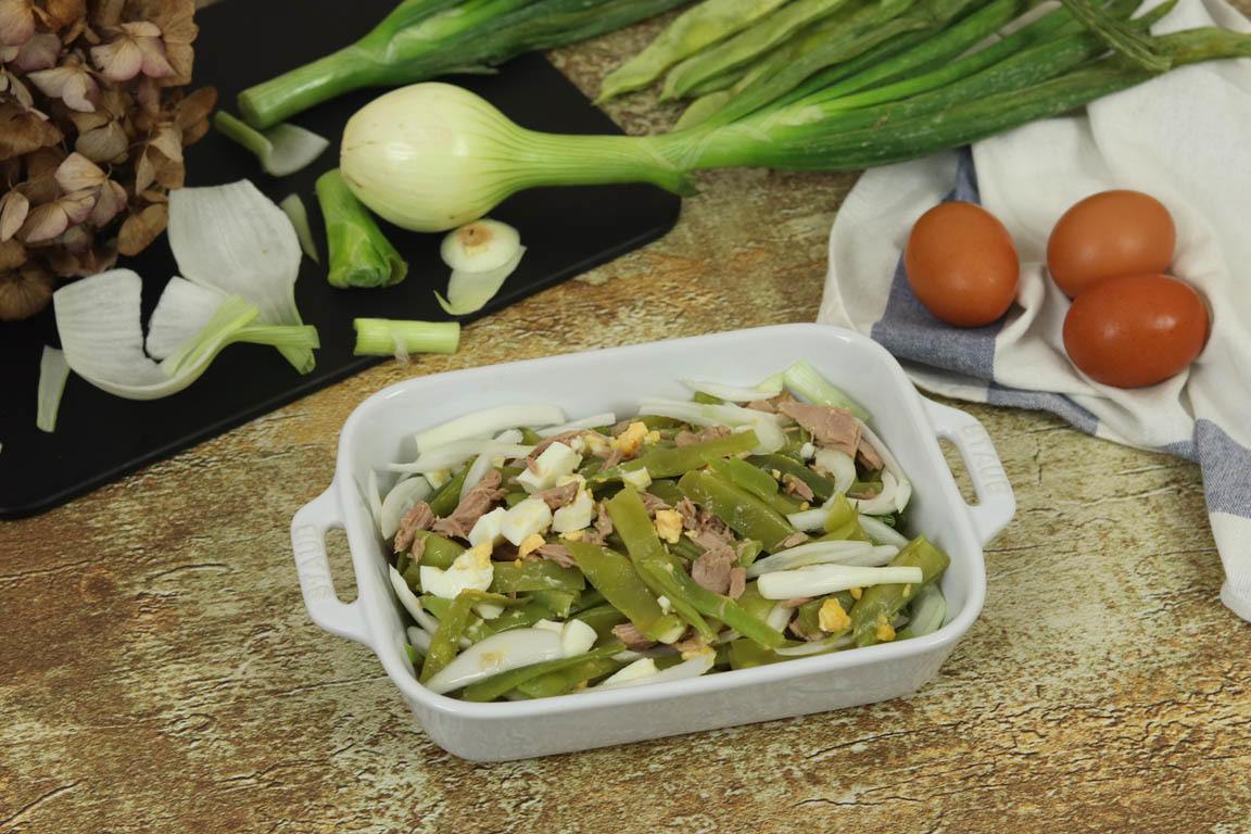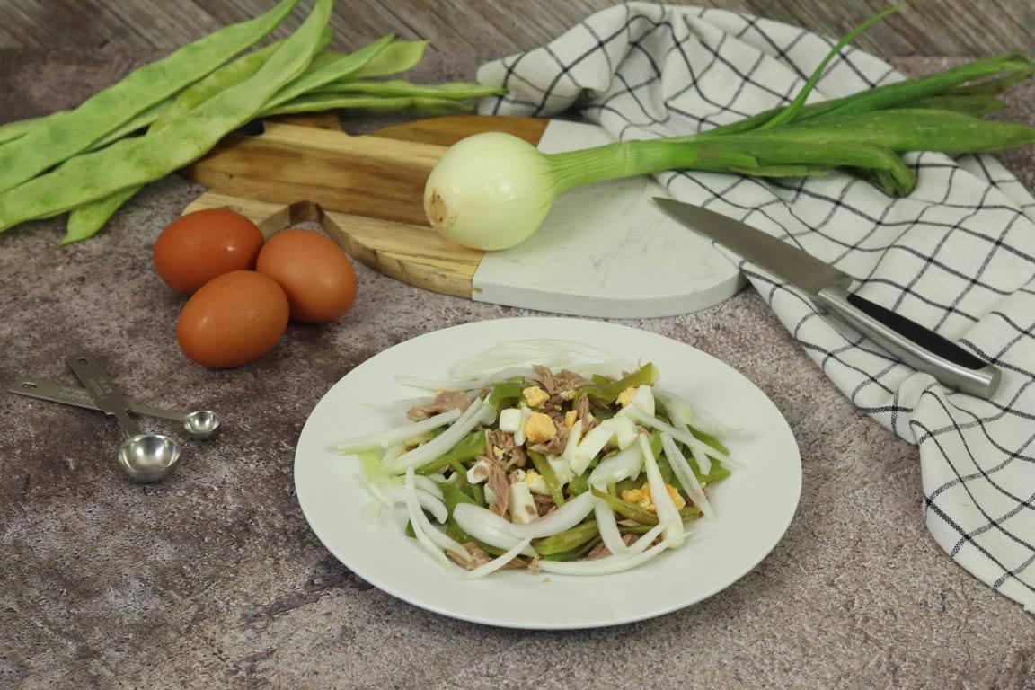 Pero si quieres aprovechar las vainas frescas por ejemplo en temporada de judías verdes entonces seguro que disfrutas muchísimo de esta receta de ensalada de judías verdes con huevo y atún en conserva.