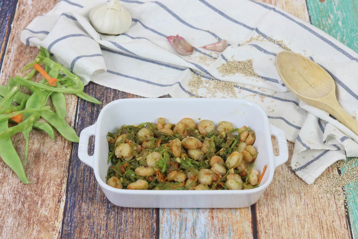 Los espaguetis vegetales, en este caso de judías verdes y zanahoria son una forma divertida de convertir unas verduras corrientes en un plato espectacular. Al cocinar las vainas y las zanahorias con gambas, soja y sésamo, al estilo oriental, le damos un sabor muy intenso y muy palatable que hace que la receta sea mucho más apetecible.