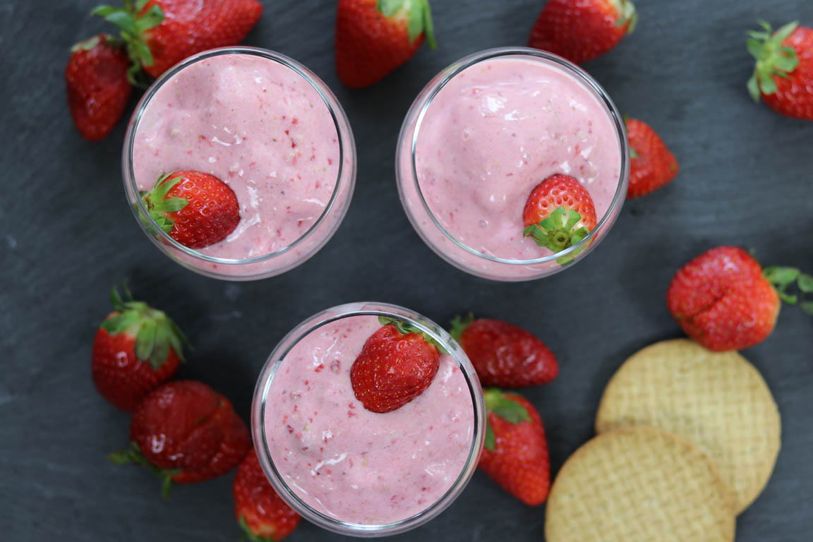 Receta de helado de strawberry cheese cake o tarta de fresa con un alto contenido en proteínas de alto valor biológico pero con una baja proporción de grasas.