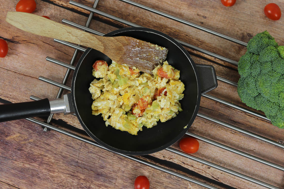 HUEVOS REVUELTOS CON BRÓCOLI Y TOMATE CHERRY