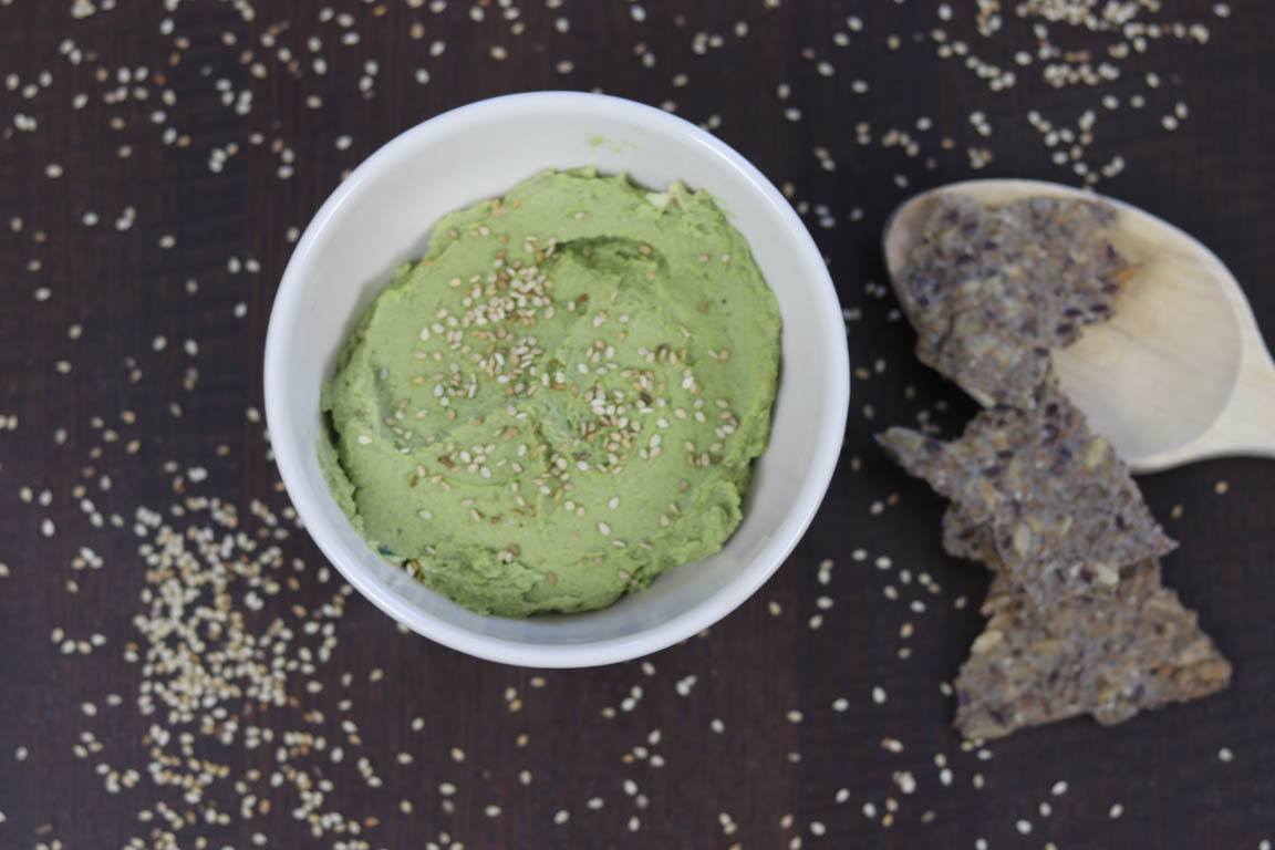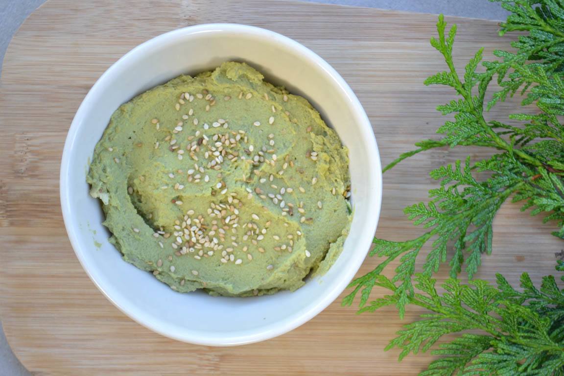 Es una receta de hummus a la que añadimos directamente salsa pesto o si no la tenemos podemos hacerlo de la manera que explico añadiendo todos los ingredientes en la batidora al mismo tiempo.