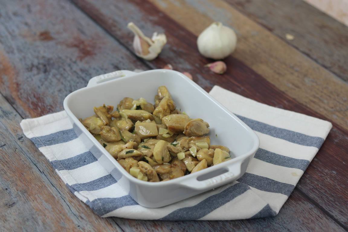 Si preparas el pollo al ajillo con los muslos deshuesados en lugar de con el pollo troceado reducirás el tiempo que tarda en cocinarse y evitarás riesgos al eliminar los huesos.