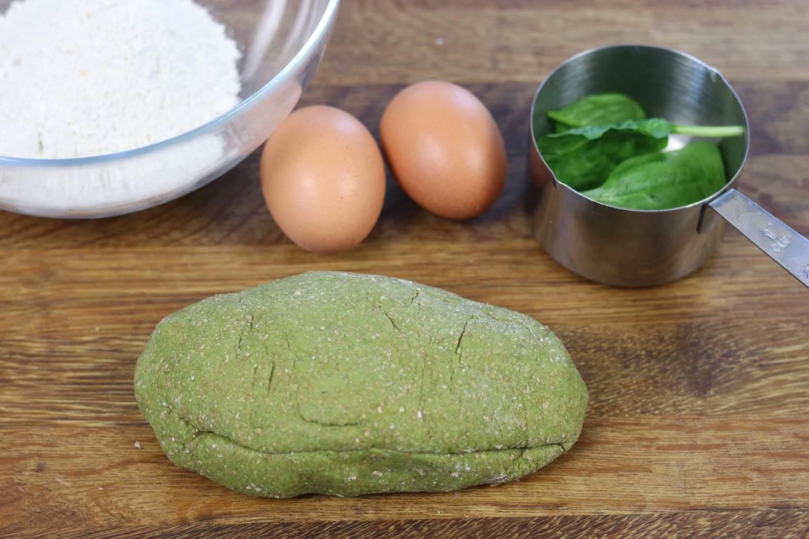 Receta paso a paso para elaborar pasta fresca de color verde. En este caso además del color verde al añadir las espinacas frescas vamos a añadir a la pasta todos sus nutrientes y un delicado sabor a espinaca.