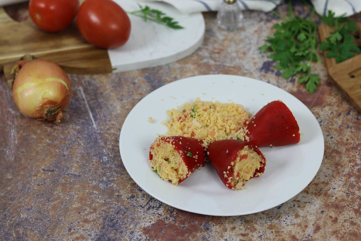 En la época de calor apetecen recetas frías y por eso te recomiendo que rellenes los pimientos por ejemplo con ensaladas. El taboulé es una ensalada muy saciante y al rellenar los pimientos de tabouleh tendrás un plato completo y saciante.