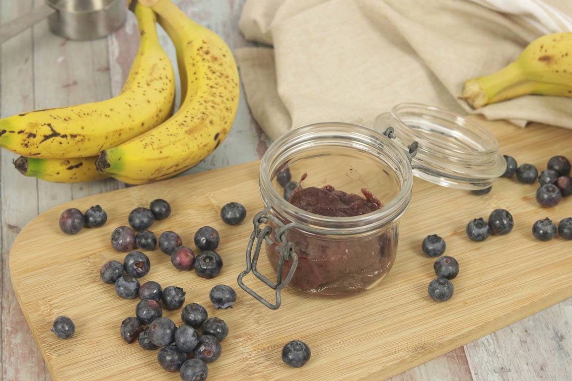 PURÉ DE PLÁTANO CON ARÁNDANOS PARA BEBÉS DE 8 MESES