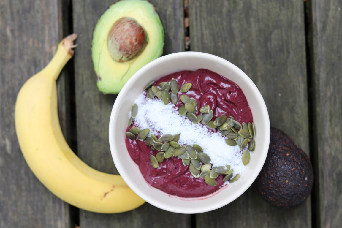 SMOOTHIE BOWL DE AGUACATE, ARÁNDANOS Y PLÁTANO