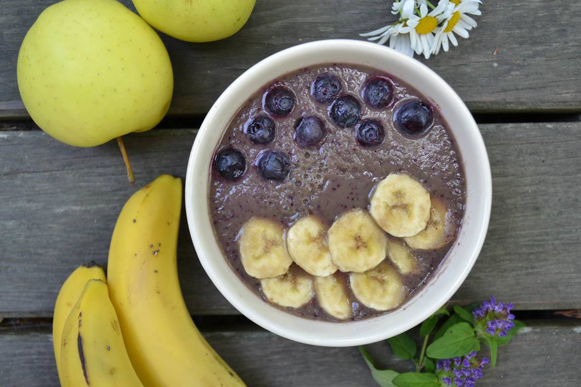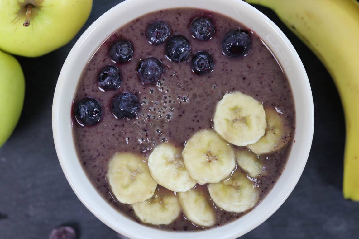 Este smoothie bowl contiene ingredientes con propiedades antioxidantes y gran cantidad de fibra que nos ayuda a regular el nivel de colesterol y de azúcar en sangre. También nos ayuda a regular el tránsito intestinal.