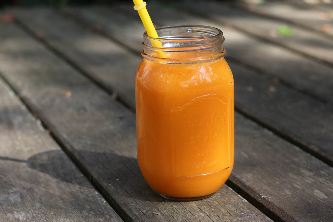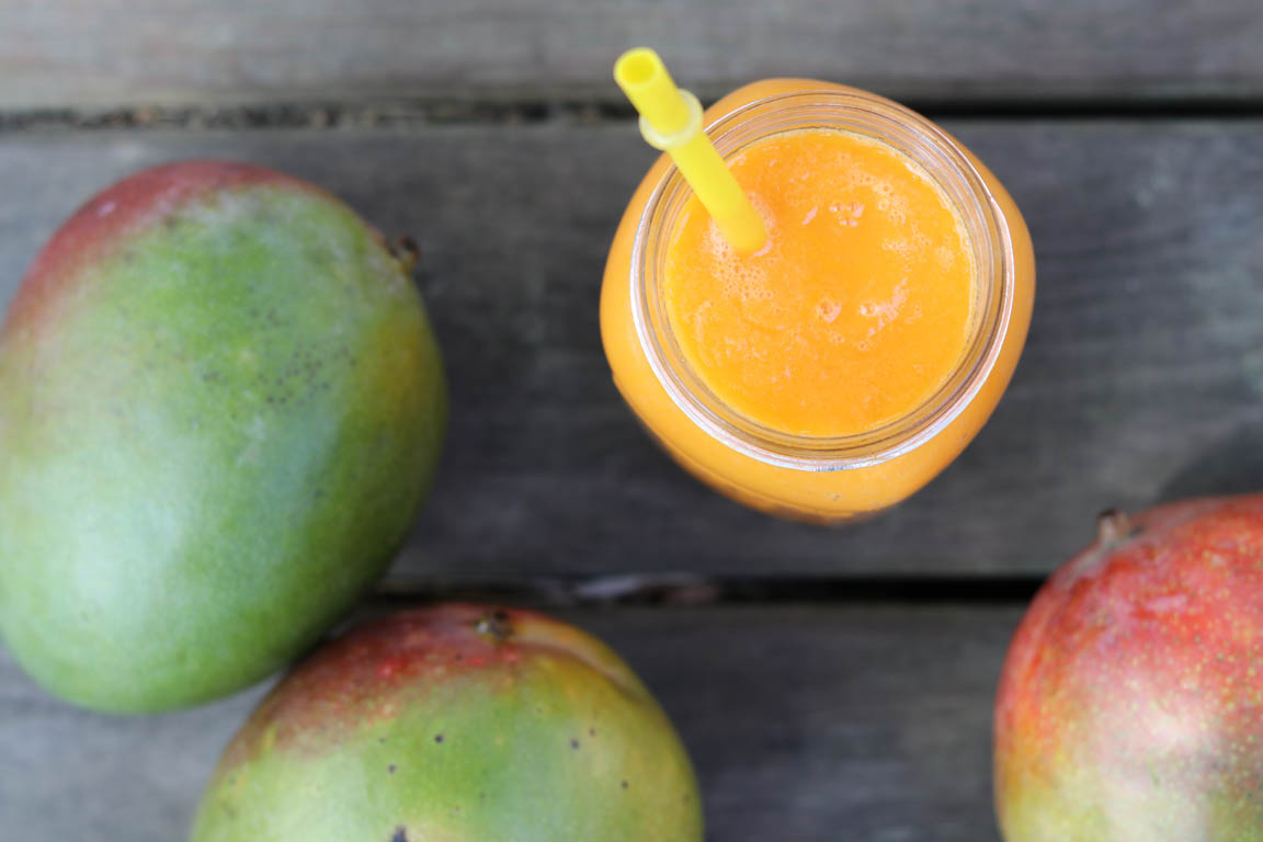 Receta de smoothie muy rico con zanahoria y mango. Tiene un alto contenido en betacarotenos que favorecen un bronceado saludable.