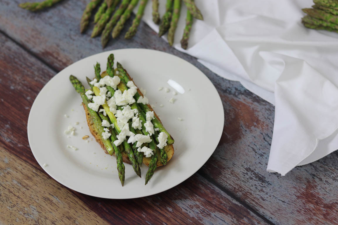 TOSTA DE ESPÁRRAGOS VERDES Y QUESO FETA